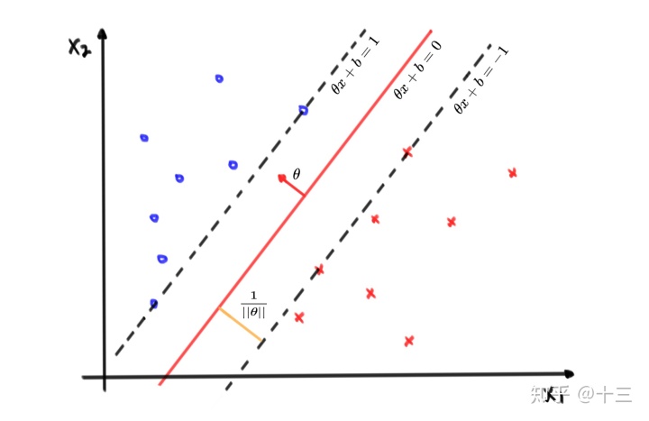 - 数据点到直线的距离 \( \frac{|\theta^Tx+b|}{||\theta||_2}\)