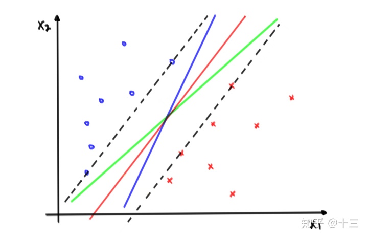 结合下面的图来具体的说一下SVM的优化方向